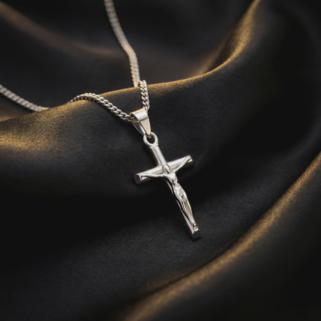 SILVER SET - CRUCIFIX AND 3MM ROPE CHAIN NECKLACE